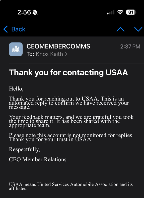 - NO! I didn’t reach out to USAA. I reached out to Juan Andrade!,